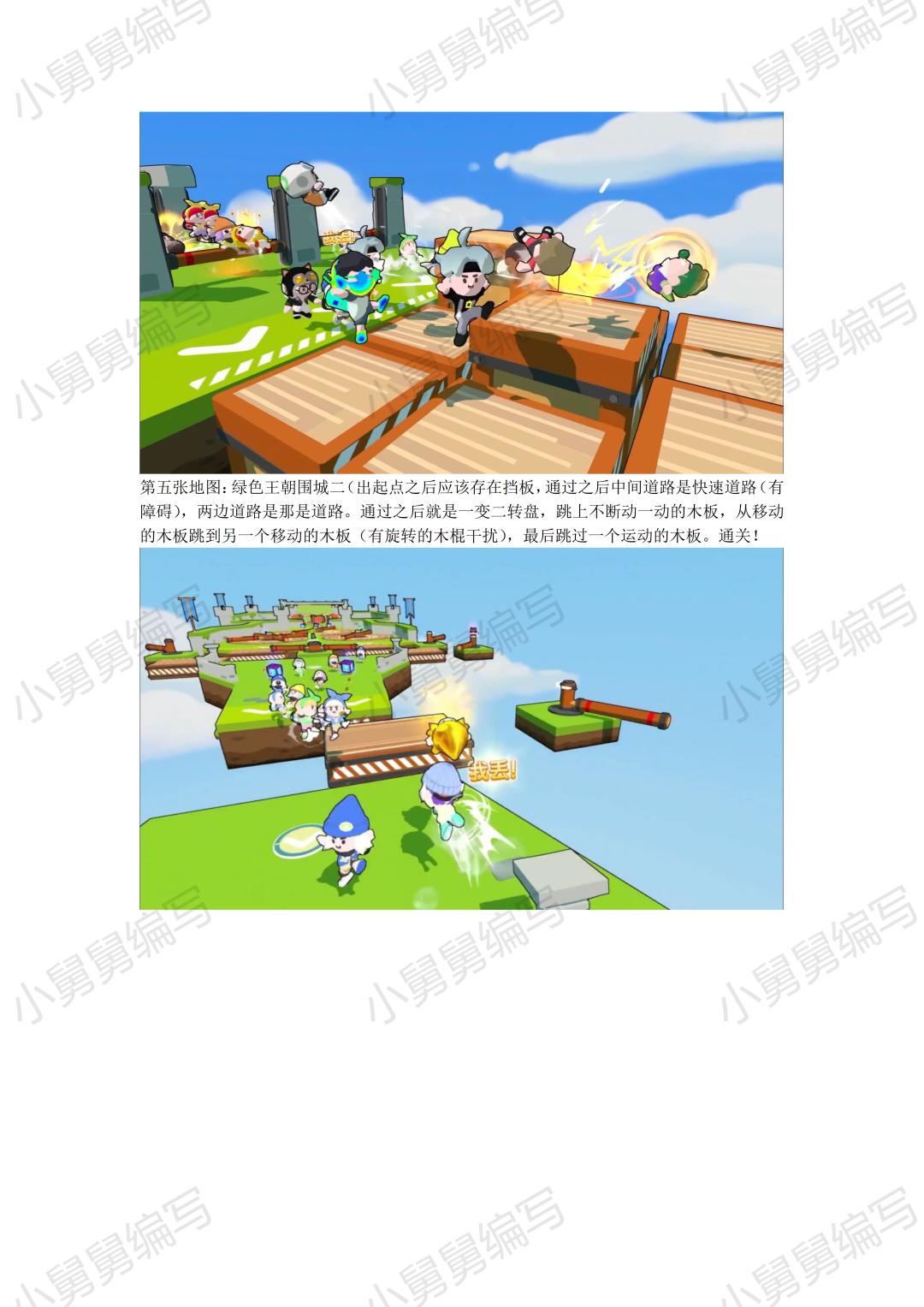 第五张地图:绿色王朝围城二(出起点之后应该存在挡板,通过之后中间道路是快速道路(有障碍),两边道路是那是道路。通过之后就是一变二转盘,跳上不断动一动的木板,从移动的木板跳到另一个移动的木板(有旋转的木棍干扰),最后跳过一个运动的木板。通关!