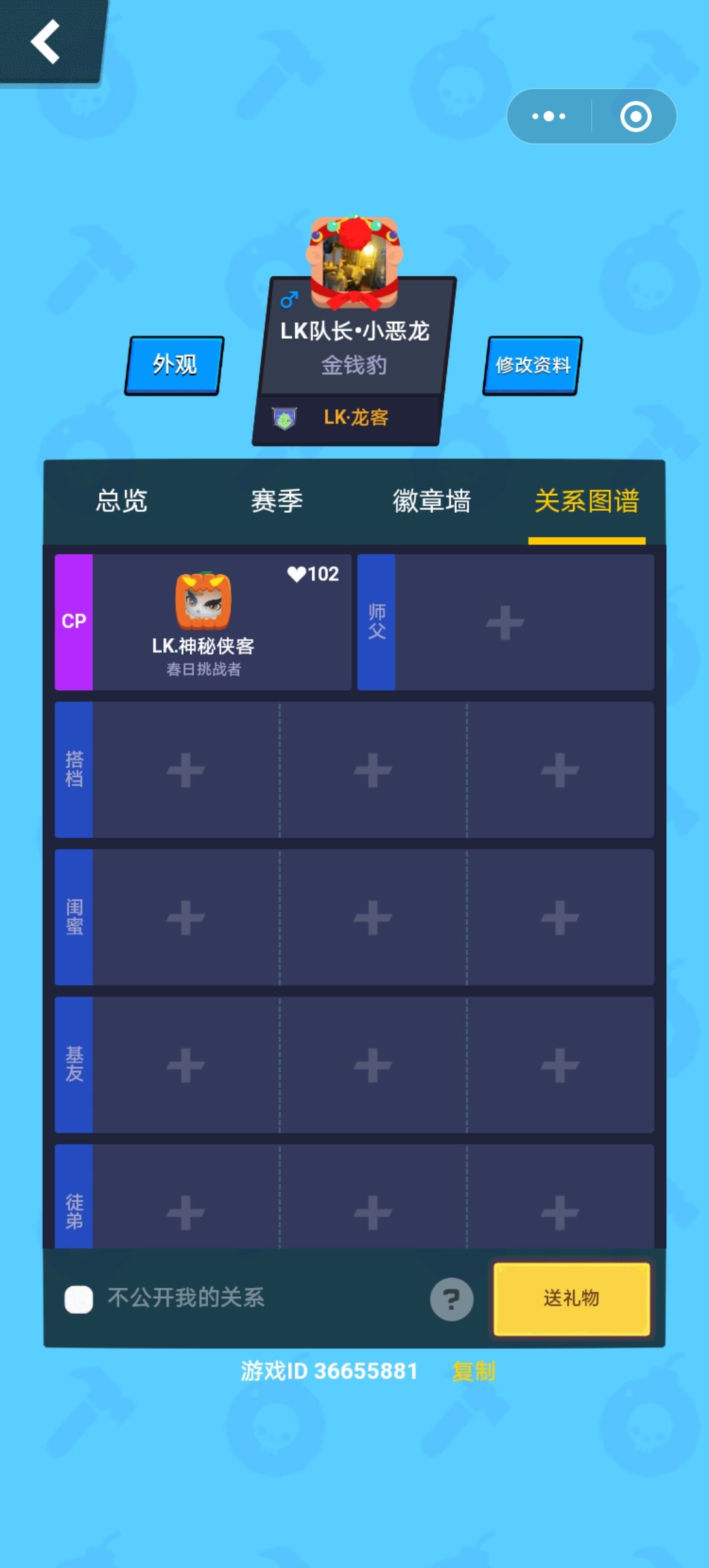 由于我呢在派对也算是个巨(狗)佬(头)了,所以想和我处关系并不是件容易的事。首先介绍一下我自己。派龄两年半,大号47级(已丢失),小号45级。操作方面呢我所有操作都会【除了无攀七反(doge)】虽然操作排名不靠前。另外,我是LK战队队长,副队是侠客,所以CP肯定是他啦
