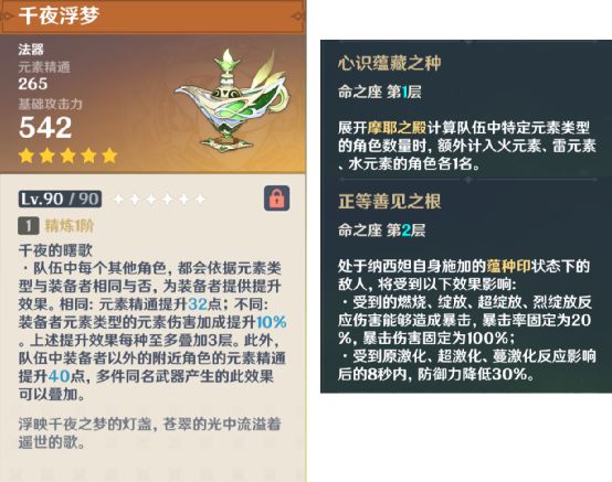 纳西妲的专武看起来强度并不低,无论是低攻击白值、副词条精通对于纳西妲的高适配性,还是特效的精通、增伤加成以及全队精通加成,都能带来不低的收益。但这些增益对于纳西妲的辅助能力提升并没有特别大。