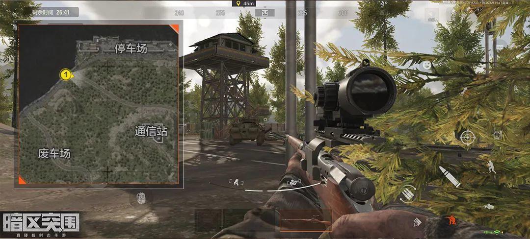 北山的瞭望塔共有3座,主要分布在地图的西北区域,其中地理位置最佳的是通信站内的瞭望塔。这座塔位于通信站东南角,离绿色帐篷不远,登上塔顶后可以在房间内找到一个手雷箱。
