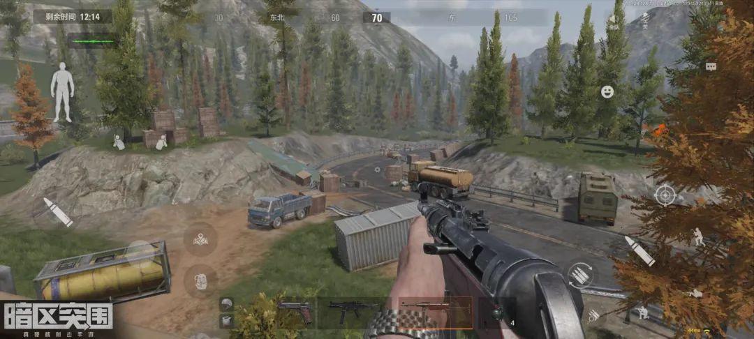 东边的视野也非常开阔,公路和林地都可以一览无余,不过在这边架枪需要小心敌人利用小高地上的木箱和散落的集装箱与你对峙。