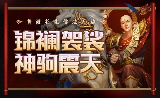 他披锦襽袈裟,骑神驹“震天”而来,下面就和梦梦一起去了解一下新英雄详情吧~