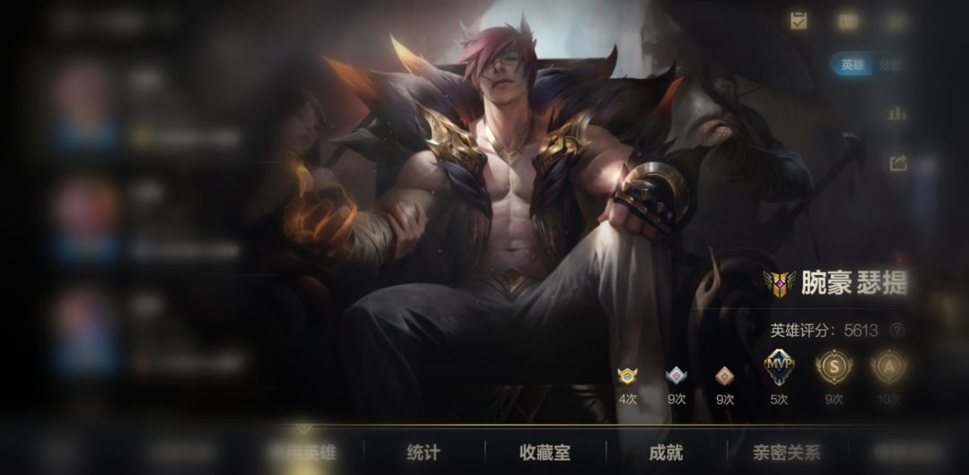 每当我被抓得时候我往往能用腕豪打出反杀,是他给了我那些自信,他也是我英雄分最高的一个,也是我最自信的一个,我不怕对面选康特我的,毕竟……优势是自己双拳打出来的。我玩其他的英雄都有个一两个的皮肤唯独瑟提没,他是我的本命,魄罗宝箱还开不到。瑟提吸引我的不仅是游戏还有背景,那个人格魅力,绝了好不好