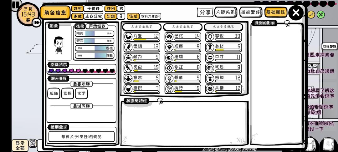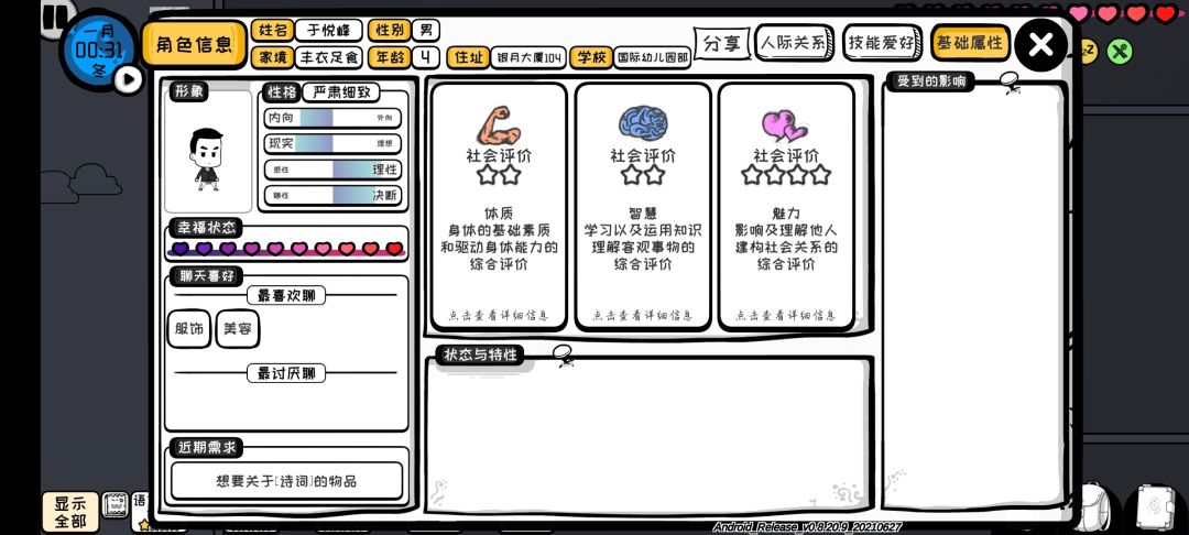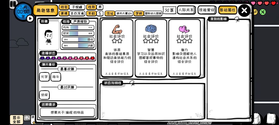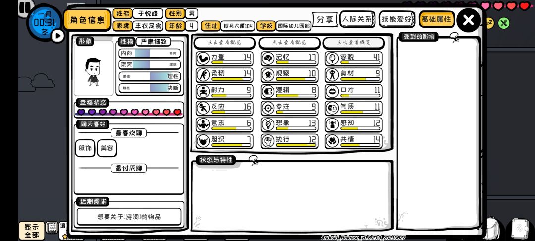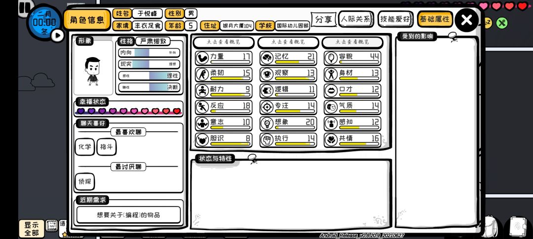 科学节目资质:32(意志4记忆5逻辑9专注8想象6)