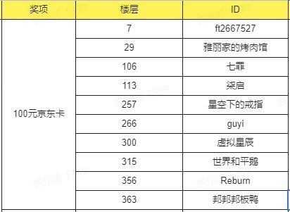 恭喜以下领主获得100元京东卡
