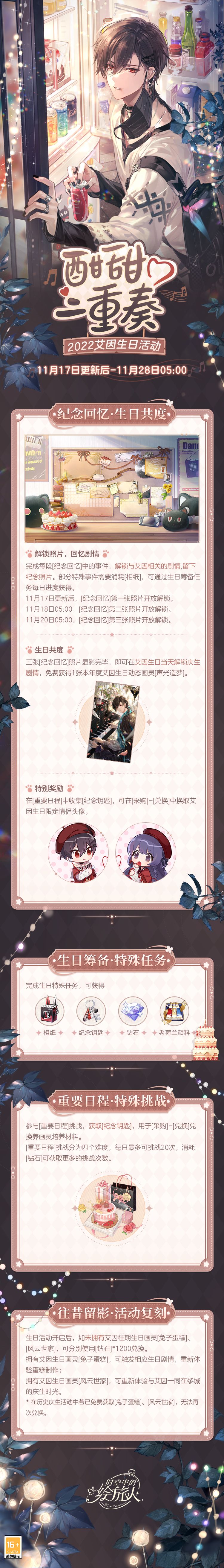 《时空中的绘旅人》艾因生日活动「酣甜二重奏」将于11月17日更新后开启!