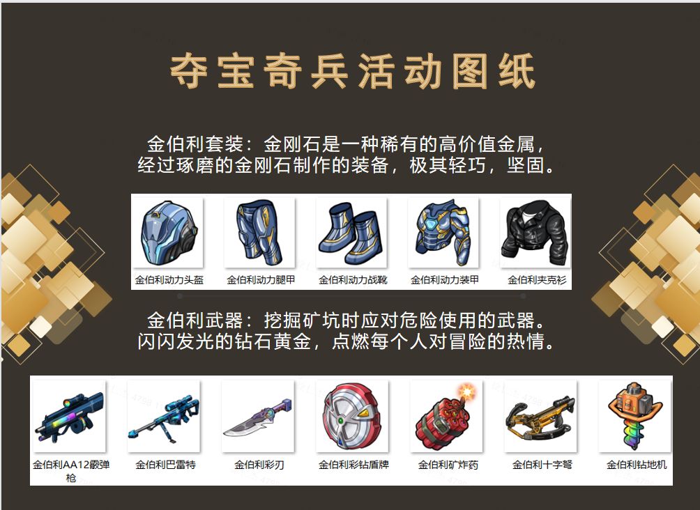 感恩节活动——夺宝奇兵将于11月18日上线。届时,您可以通关活动副本,收集夺宝奖章,开启宝箱获得限量图纸!