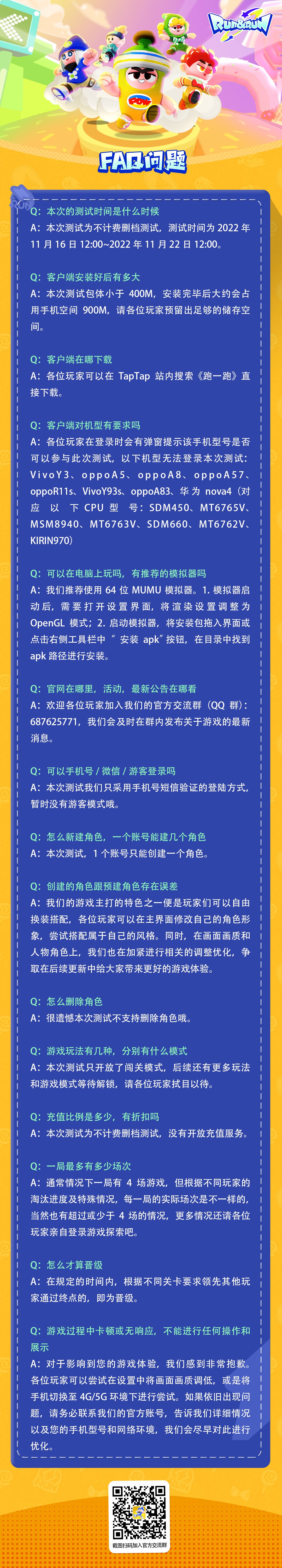 我们为大家准备了本次【胡闹测试】相关Q&A,欢迎查阅。