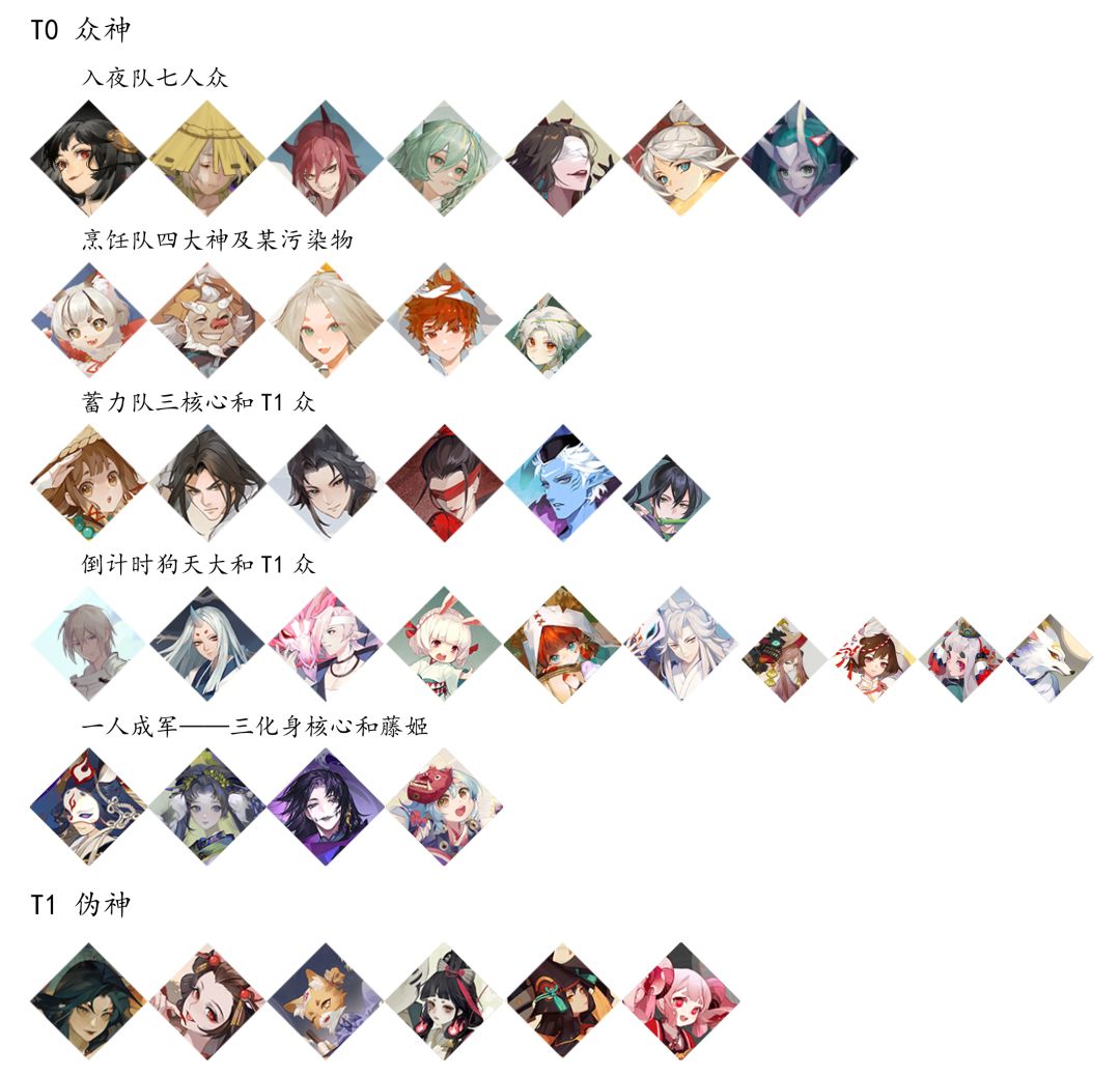 上面这些不需要解释。伪神我给定了T1,毕竟一人打一队,实力又差些火候。