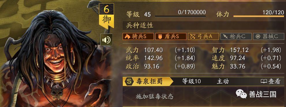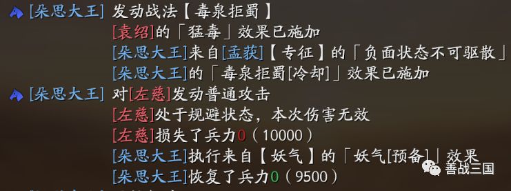 其自带战法“毒泉拒蜀”的描述看起来挺复杂的,但其实分两部分:放毒、毒发