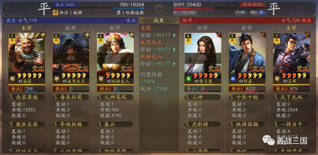 在以下四封战报中,两个胜利是因为有缘分起的些许作用,也有象兵拖回合减伤30%起的防御作用。但在正常情况下,枪兵还是碰不得的,特别是带火的吴枪
