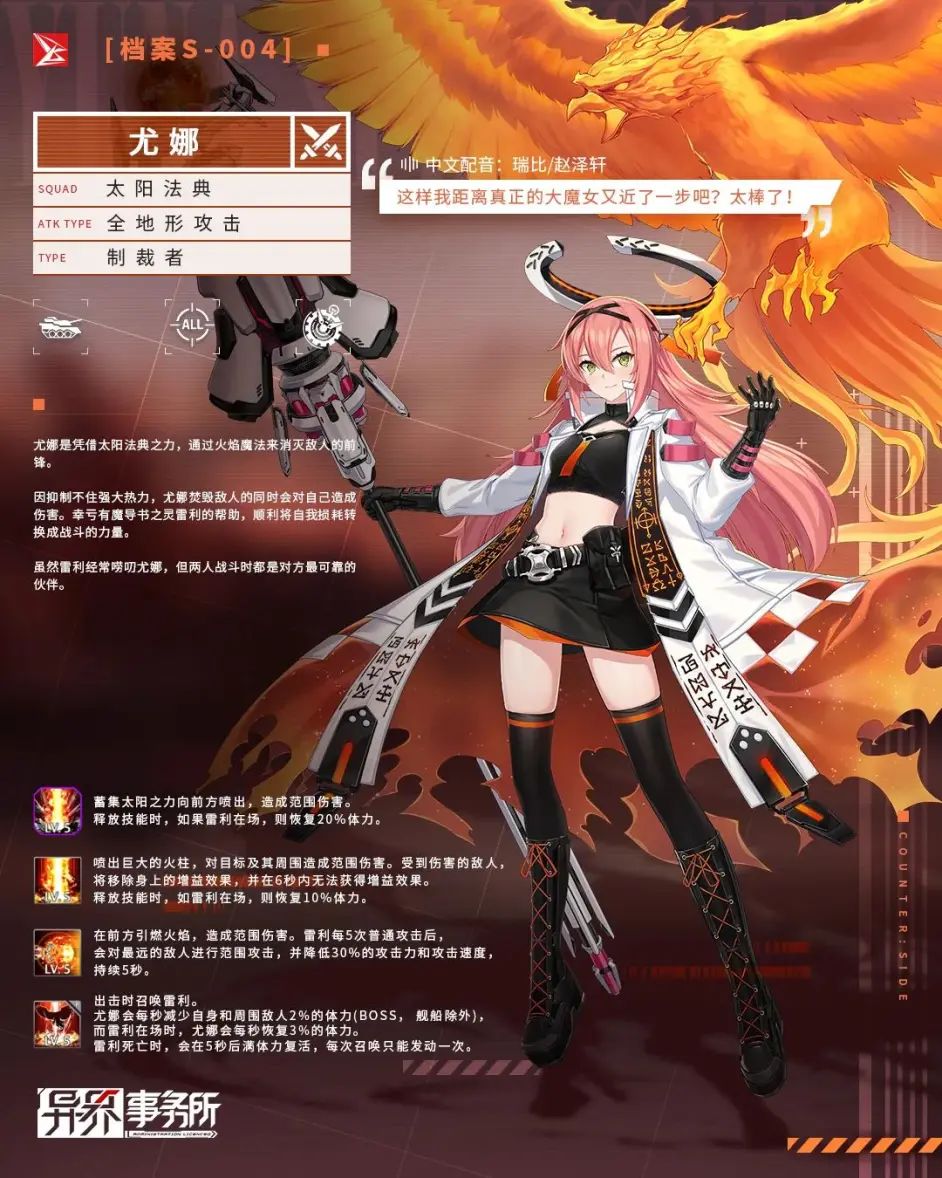 觉醒尤娜是通过强大的火焰魔法以及魔导书之灵“雷利”来消灭敌人的前锋。觉醒徐芸是能用念力自由操控枪械的突击队员。