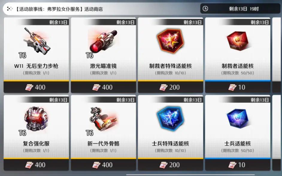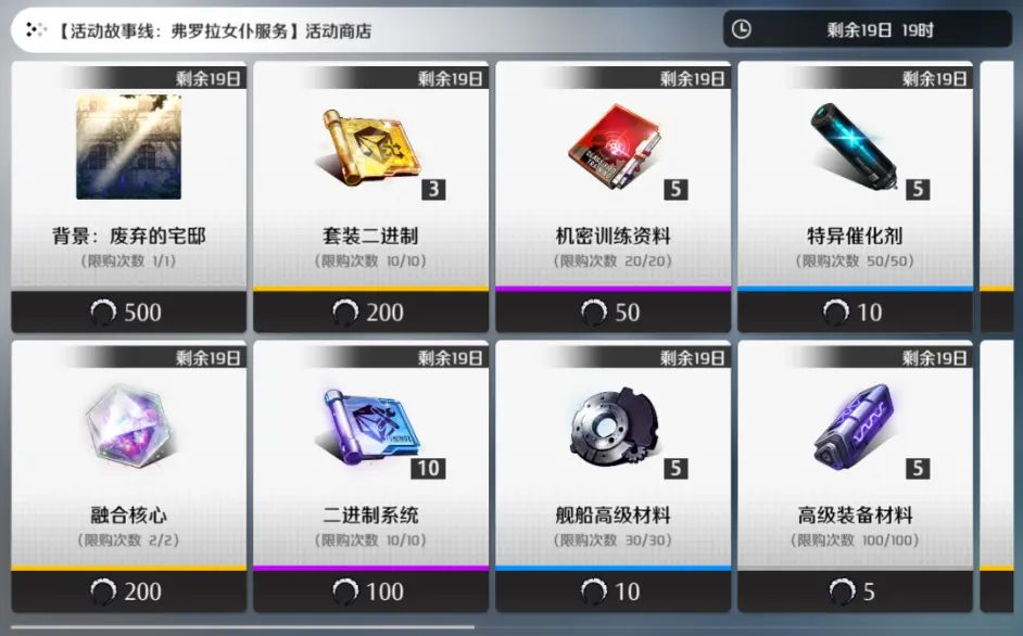 老板可通过挑战关卡获取道具“发带”和“蹩脚的传单”,使用道具可在活动商店中兑换到【背景:废弃的宅邸】以及T6级SSR装备、融合核心、套装二进制、二进制系统等珍贵作战物资。