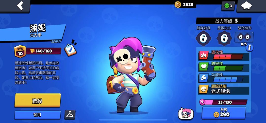 hello,各位荒野乱斗的斗士们大家下午好呀!我是你们的小编DD,这篇文章小编想带给大家的是荒野乱斗中很强的潘妮,潘妮是荒野乱斗中可以安放迫击炮台的小萝莉,接下来小编就为斗士们好好讲解一下潘妮的玩法技巧!跟着小编一起来看看吧!