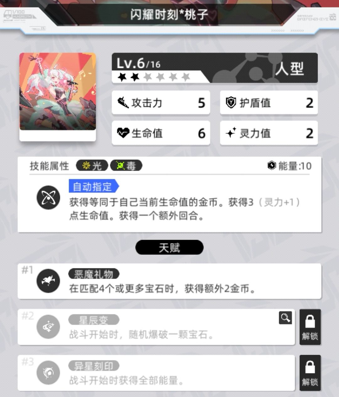 睡神可以开第一个天赋给桃子加生命从而获取更多金币(指3金币)