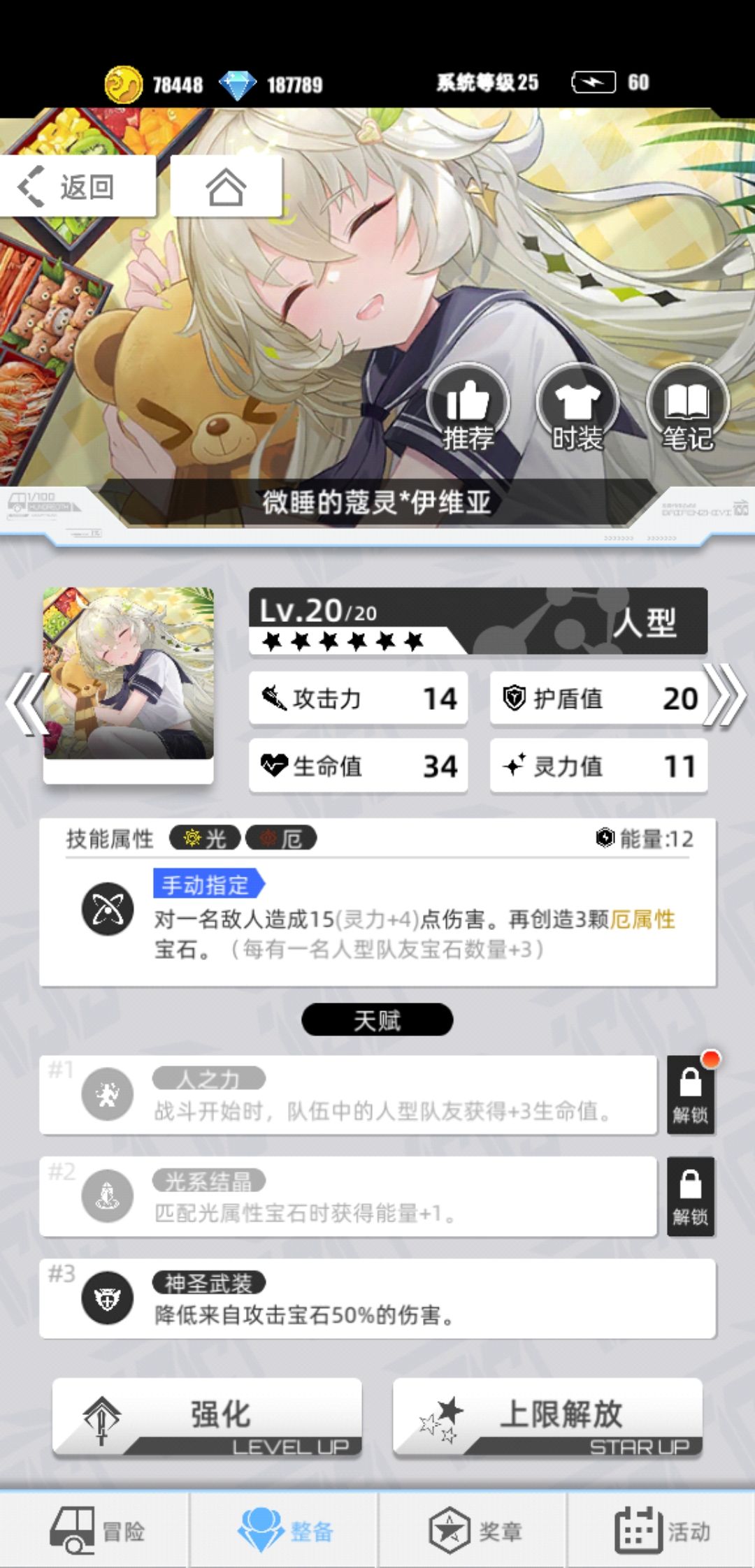 这个人就重要了,不仅可以提供灵魂潮汐(厄))为睡神大爹服务。还可以消能量限制对方角色,同时还能给桃子充能。开一下第三个天赋就好。