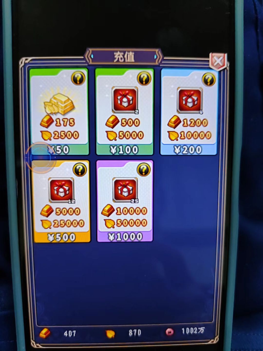 充值1000元=1万金5万金叶