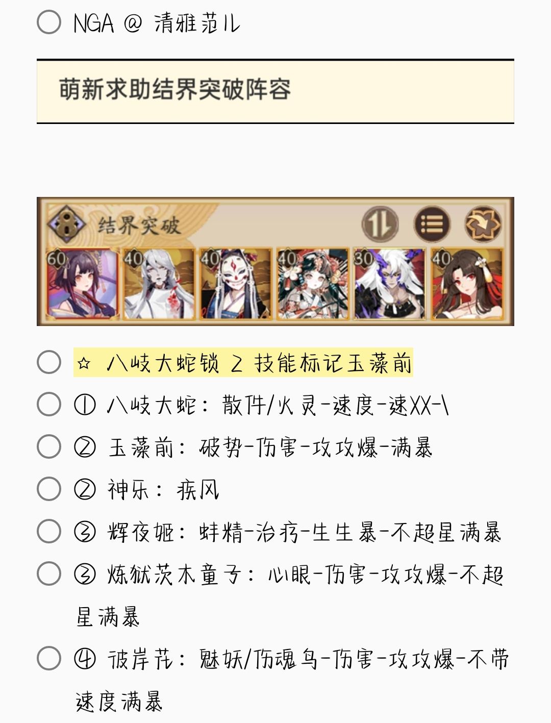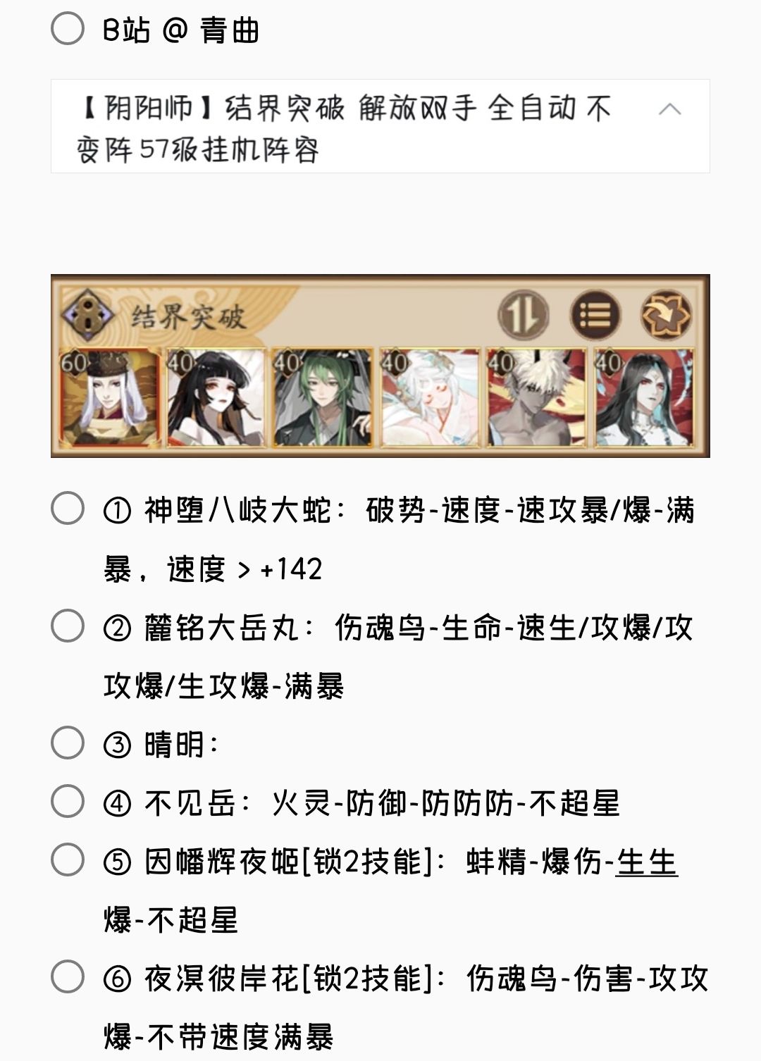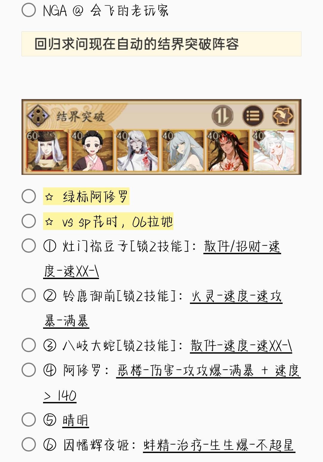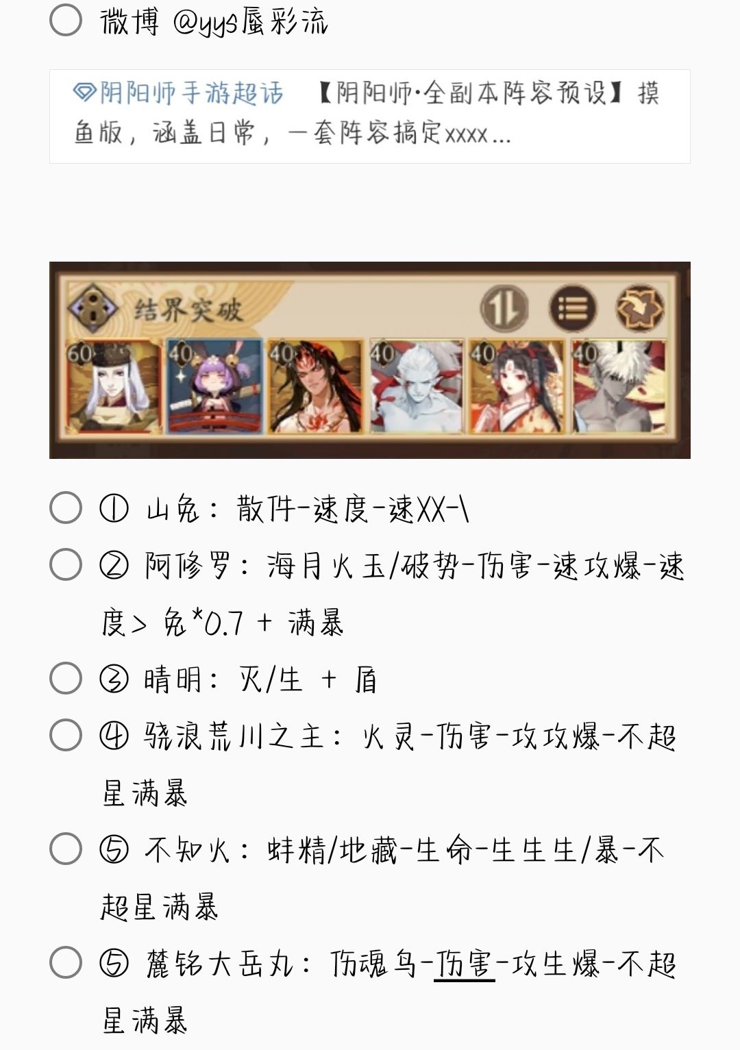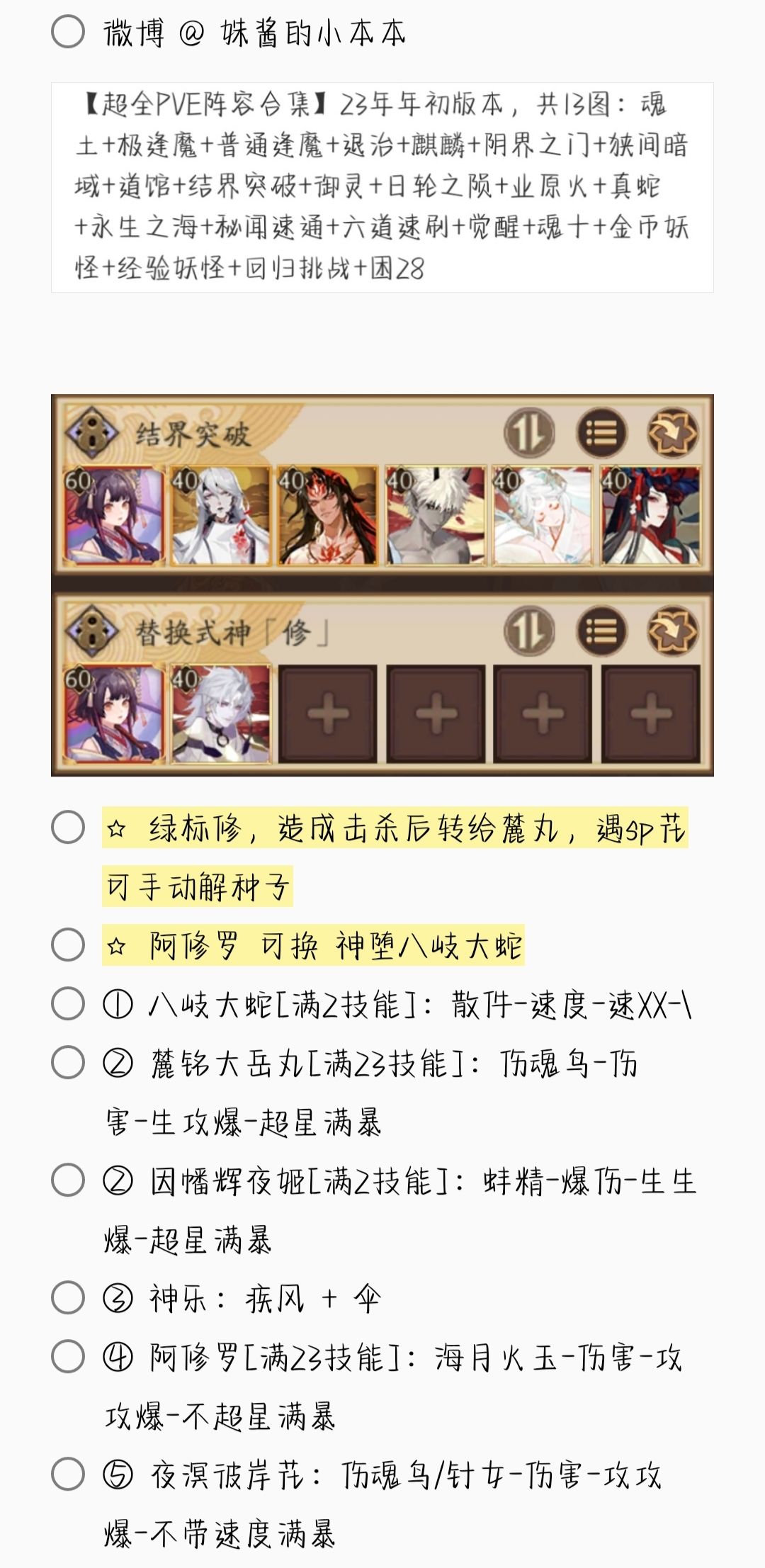 2. 若无特殊文字说明,阵容式神均需六星 + 满技能[151→至少满二技能,以此类推]