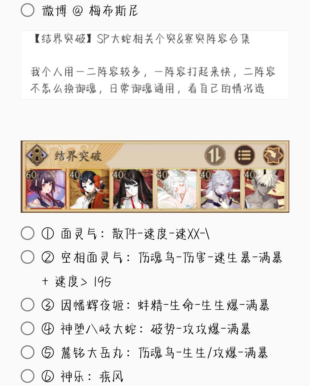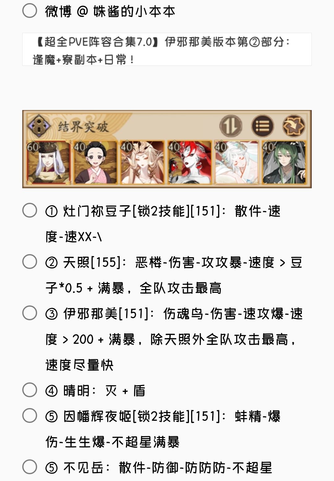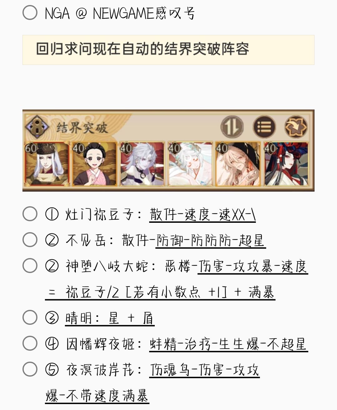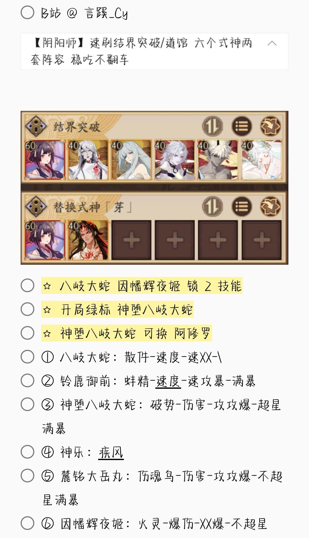 2. 若无特殊文字说明,阵容式神均需六星 + 满技能[151→至少满二技能,以此类推]