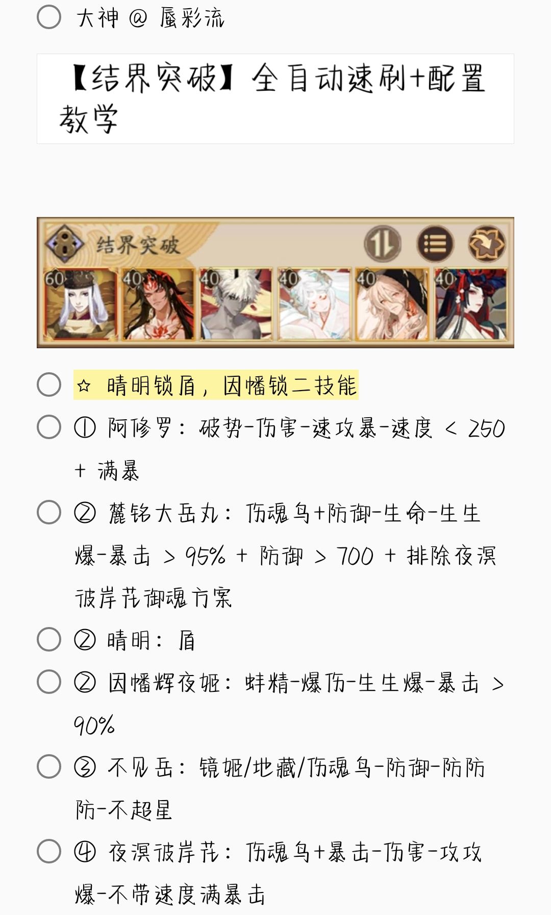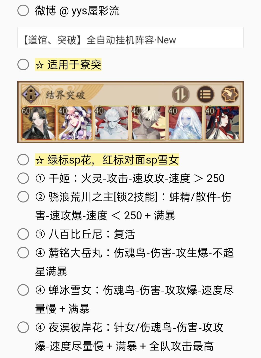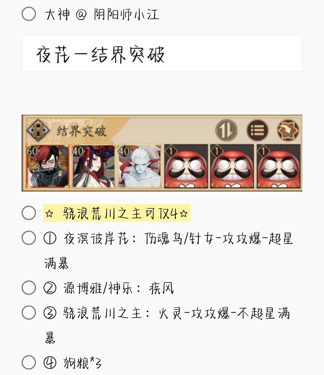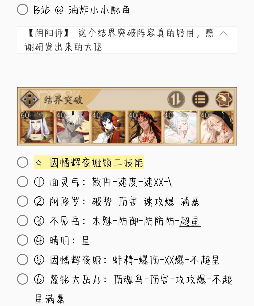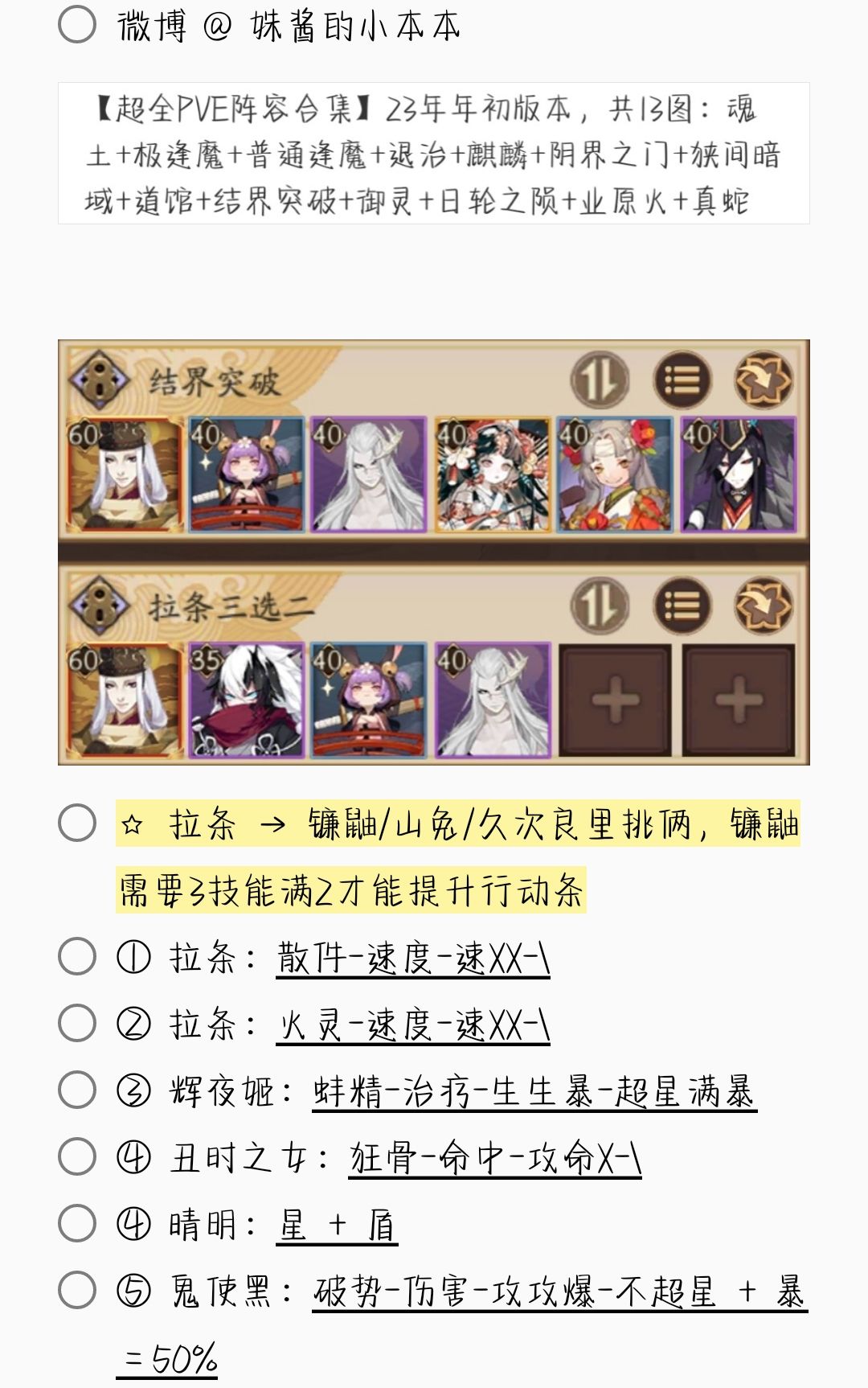 2. 若无特殊文字说明,阵容式神均需六星 + 满技能[151→至少满二技能,以此类推]