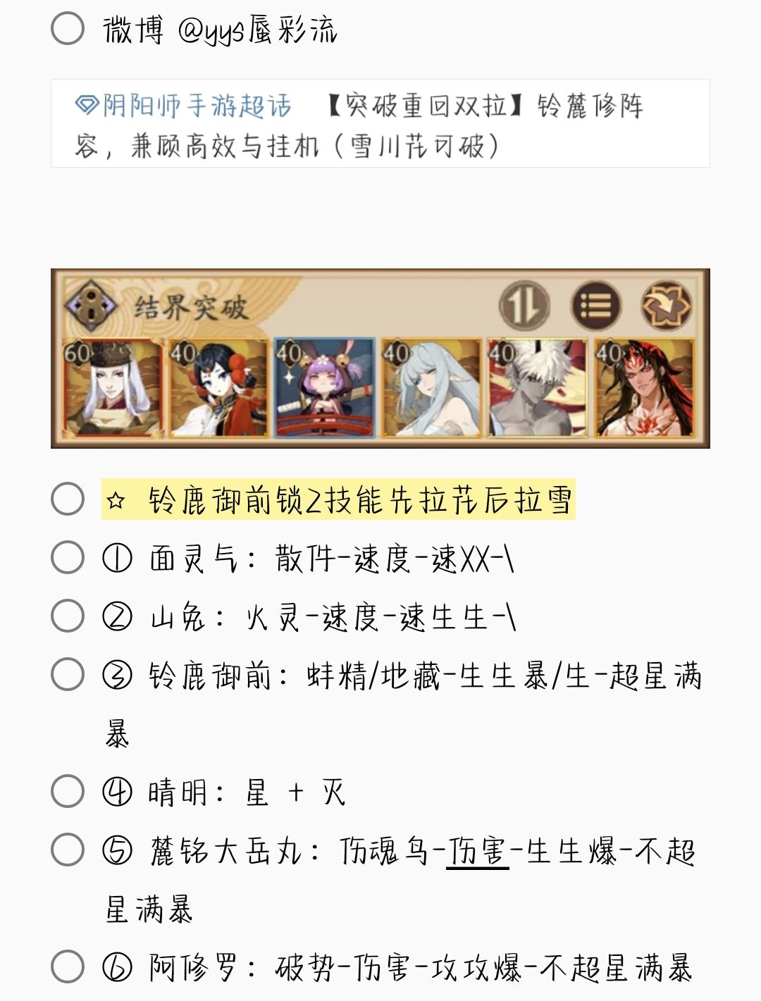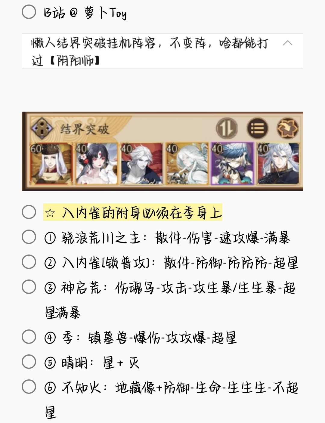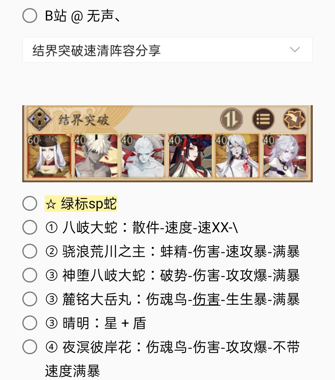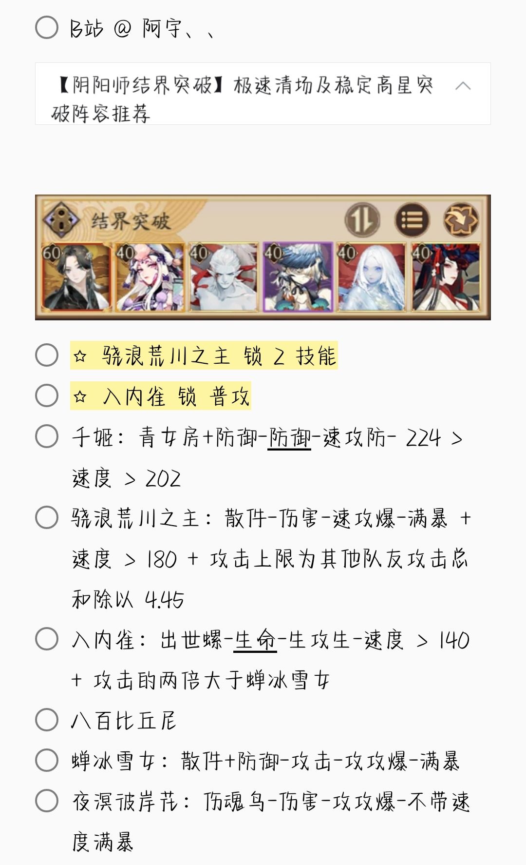 2. 若无特殊文字说明,阵容式神均需六星 + 满技能[151→至少满二技能,以此类推]