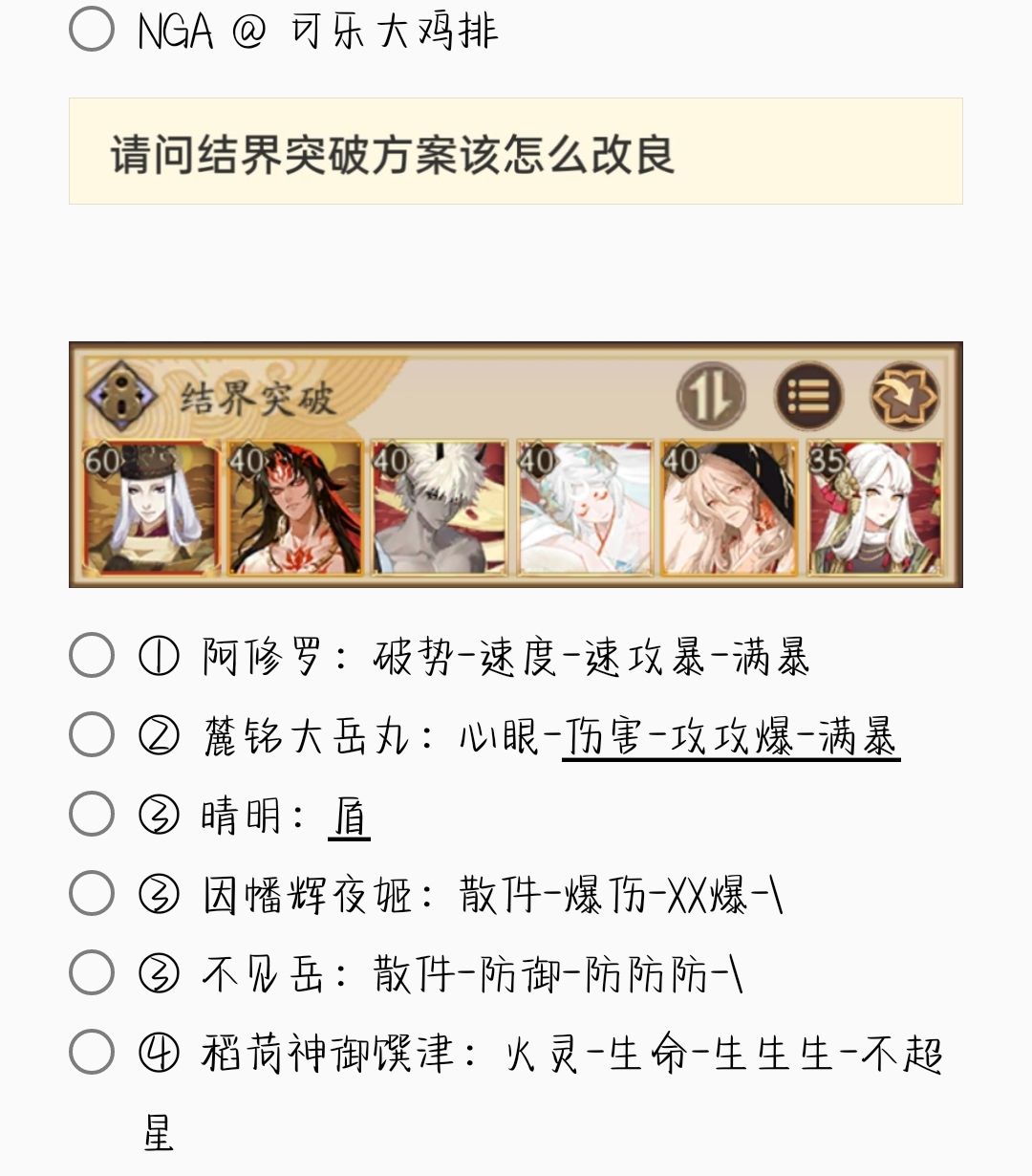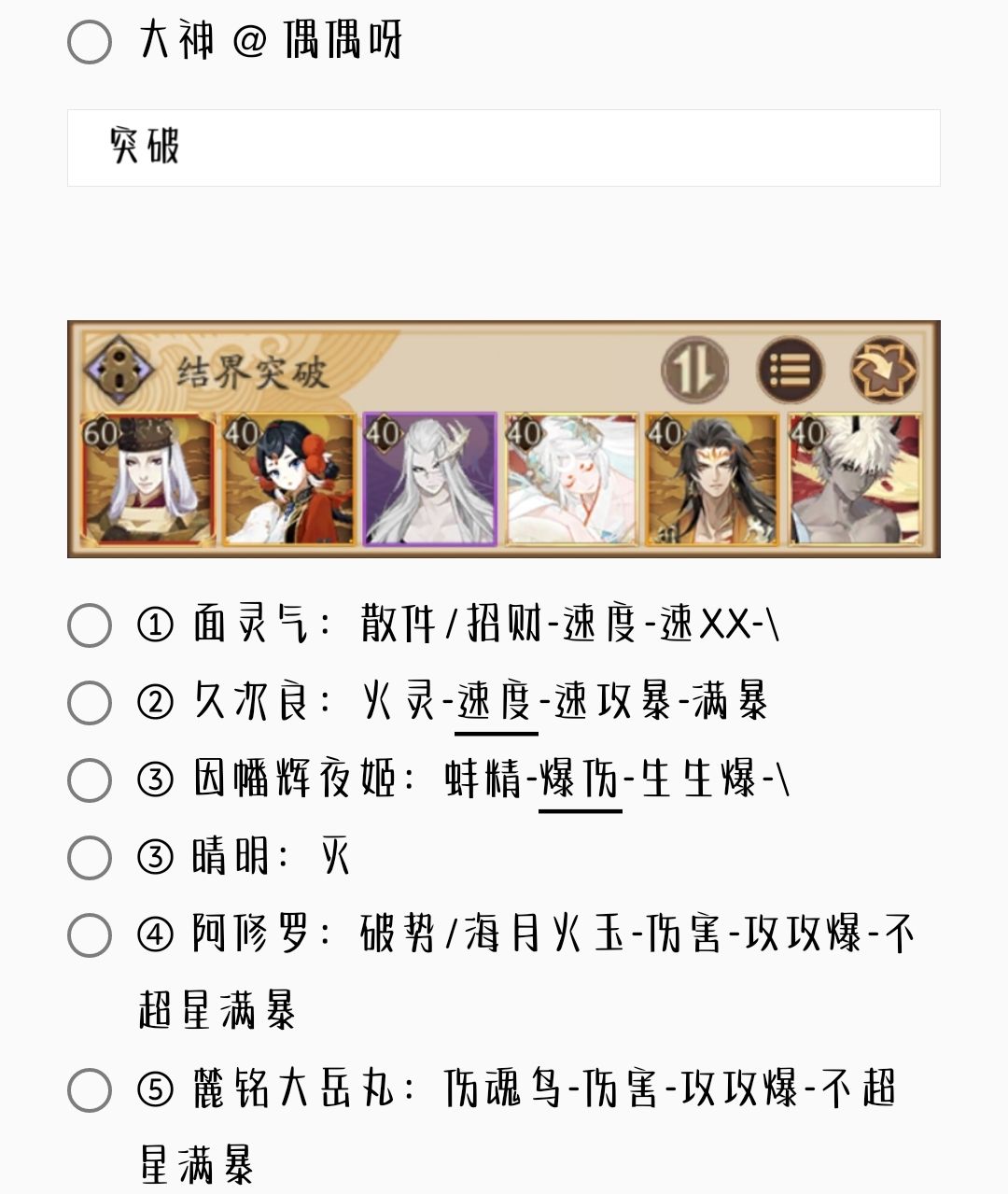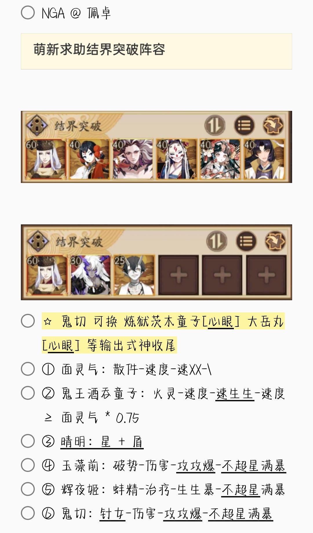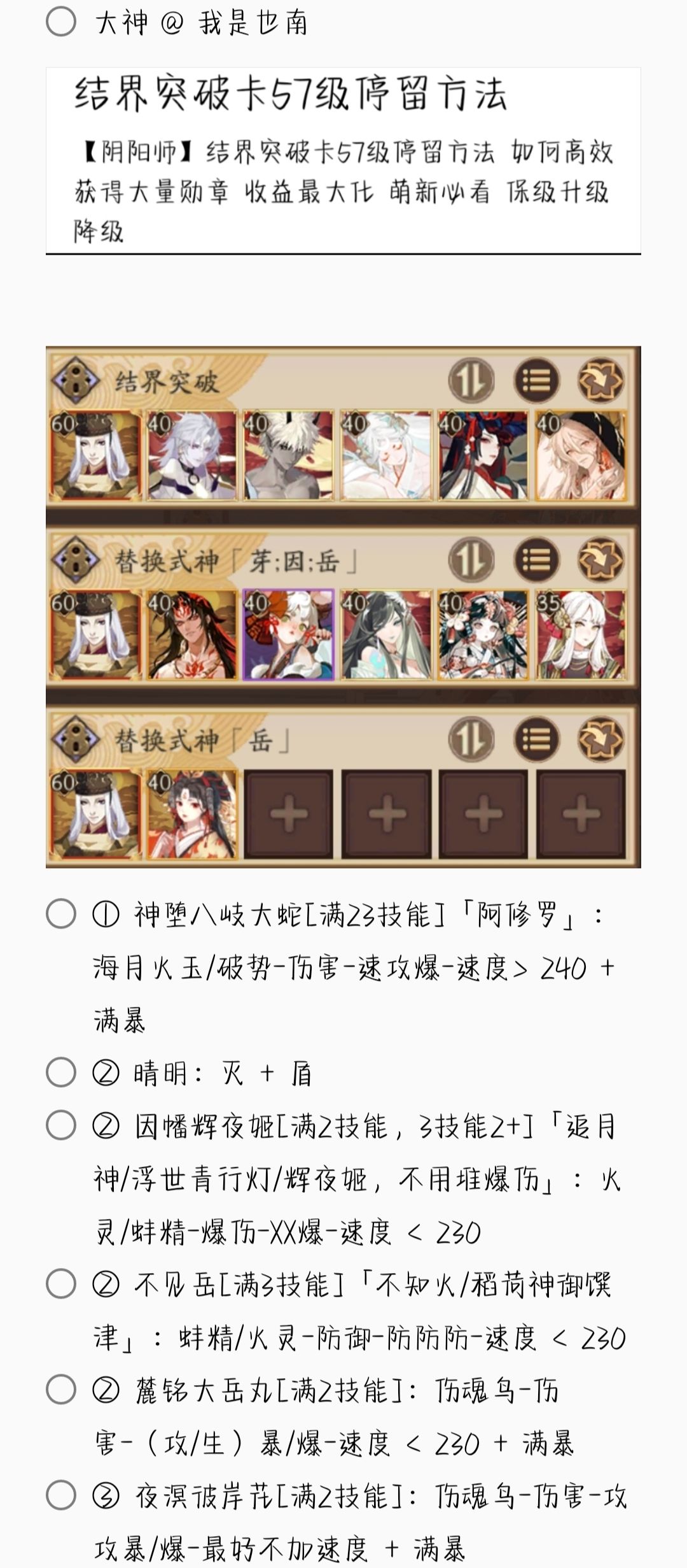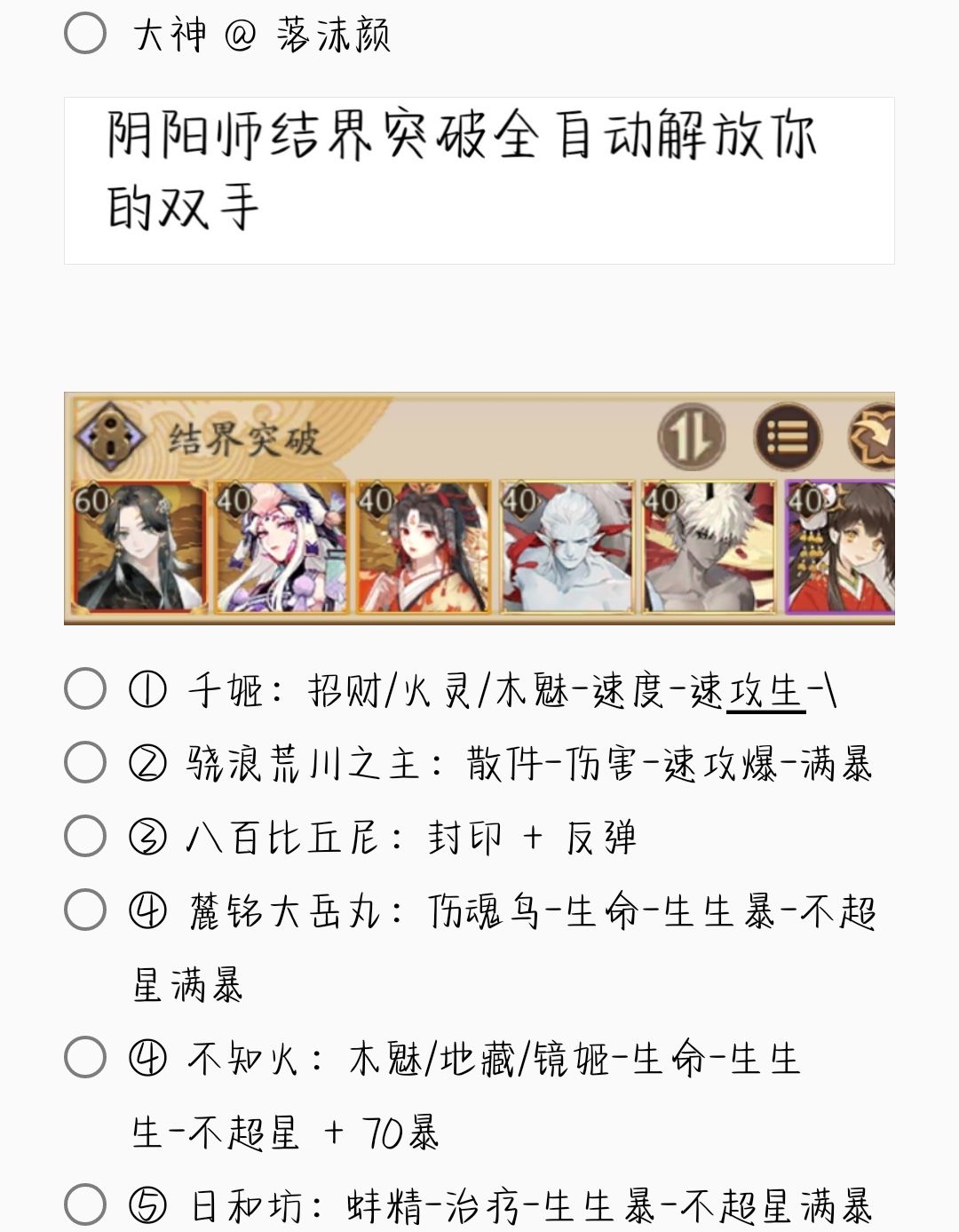2. 若无特殊文字说明,阵容式神均需六星 + 满技能[151→至少满二技能,以此类推]