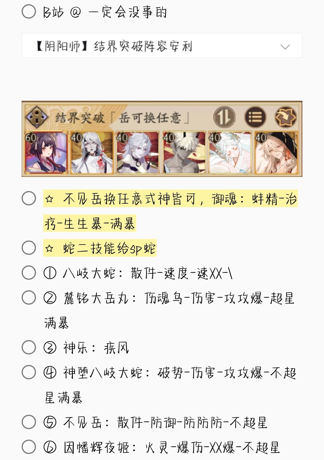 3. 笔记形式为使用游戏内置的[御魂搭配],即: