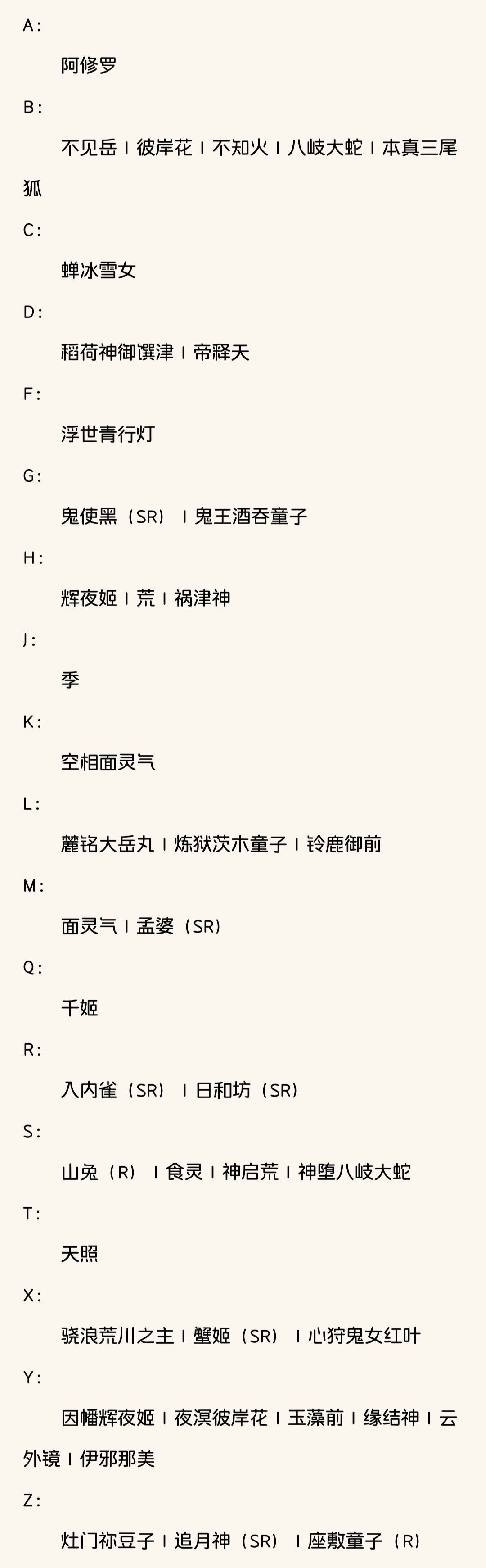 目前合集所有使用到的式神[如果一个都没有就不用看了]:
