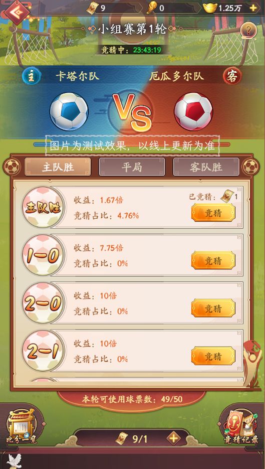 每个选项都有各自的收益,收益的数值一旦生成后将不会变更。具体获得奖杯数=竞猜球票数*收益倍数。