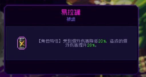 此角色搭配爆炸伤害会有大概45%的加成和减少受到的爆炸伤害,技能不算鸡肋,可以前期过渡用,炸点石头箱子,石头门,还是挺好用的。此角色有一个主动技能和一个被动技能: