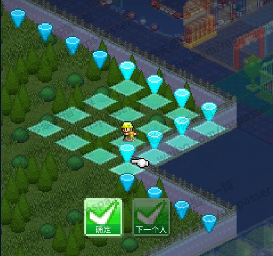 6. 游乐园增设入口,要把相关建筑拖到大门口的方块区域,不是随便放的