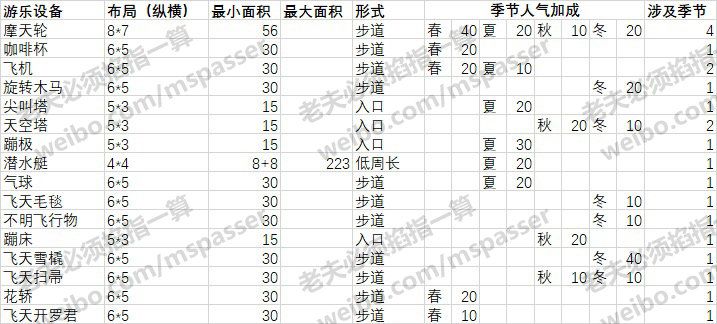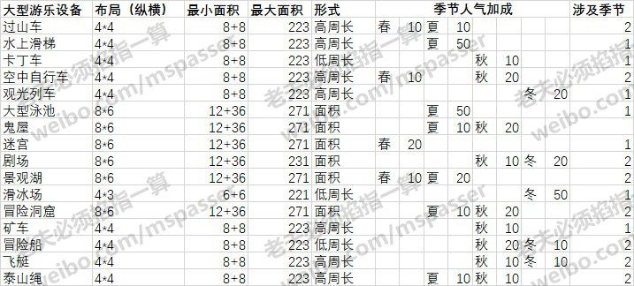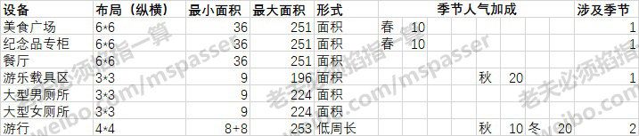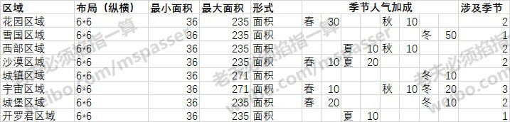 2. 因为游戏分四个季节,所以把每个季节的人气加成记了一下,这也是之后布局图的主要依据。