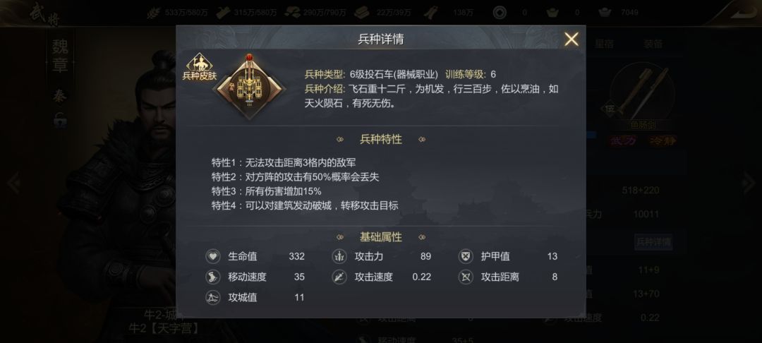 众所周知,投石车和其他兵种不同,对建筑物的伤害只与带兵数、攻城值、攻速、技能搭配加成、武器加成几个要素有关。 其中:
