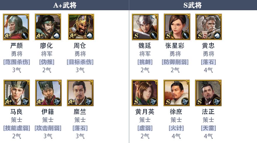 咱们先来看看魏国的A+武将、S武将都有哪些:
