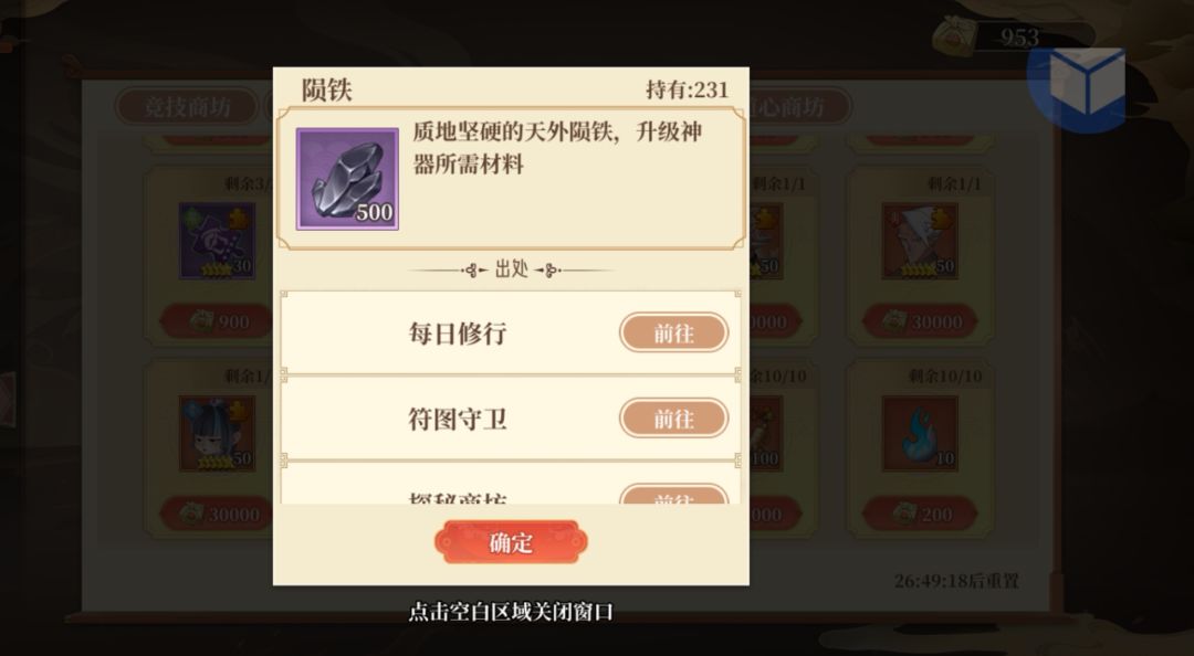 仙途物资前两周只兑换陨铁(只兑换陨铁(只兑换陨铁)!!!),第三周开始可按需兑换神器晶石/化形丹/唤灵符(后面两个单神器满级前不建议兑换)。