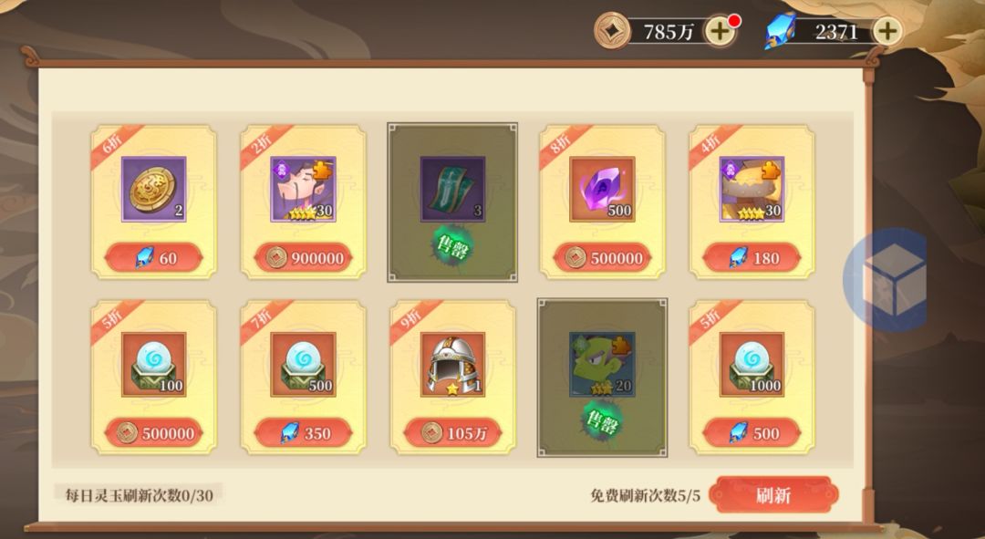 推荐购买九龙令(任意价格拉满)/蕴灵珠(4折的前期可以买)/五行符(3折拉满,4折看家境)/生命-攻击符(6折任何时期可以买,看家境)/不推荐的就是不要买或者性价比不高,买了就是冤大头,点名批评四星-五星狗粮和金币购买的宫灯币。