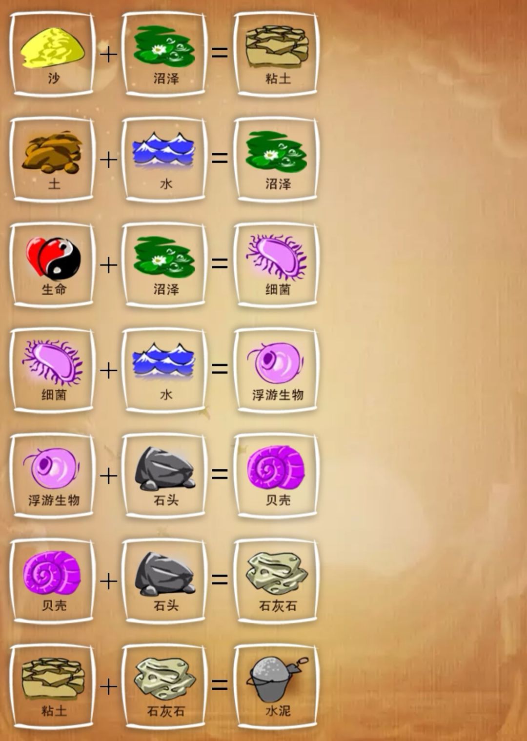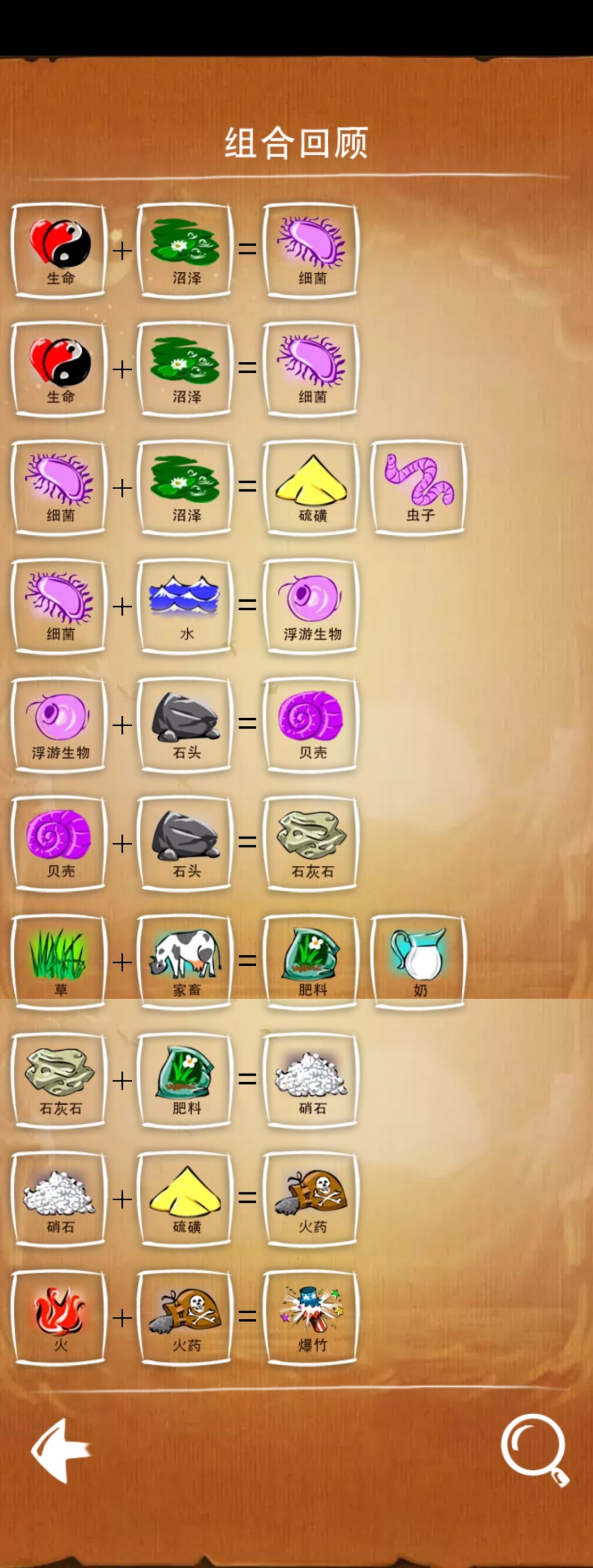 总结:这个模式看着难,实际上也是有诀窍的,当你合成的物品是有用的时候,顶部目标后面的百分比会增加,如果没有增加那就是无效合成,退回去再尝试其他组合就可以了。