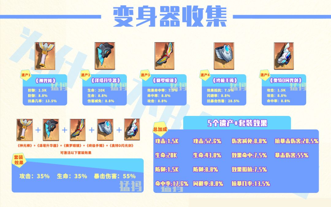 另外整理了一下奥特曼遗产的属性,但是由于条件有限没能收集到5星奥特曼遗产的属性,还望朋友们理解。