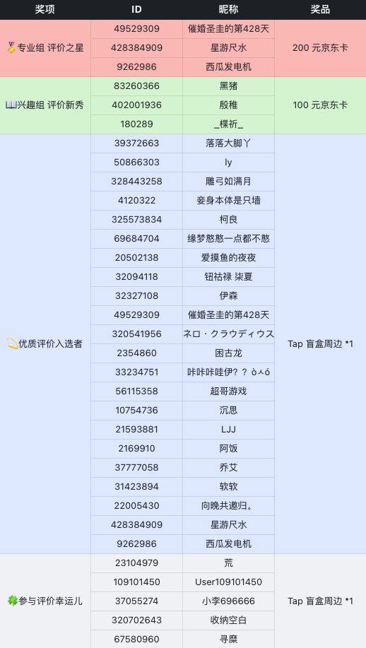 评价活动是TapTap官方举办的社区活动,旨在征集高质量的评价内容,与厂商无关。