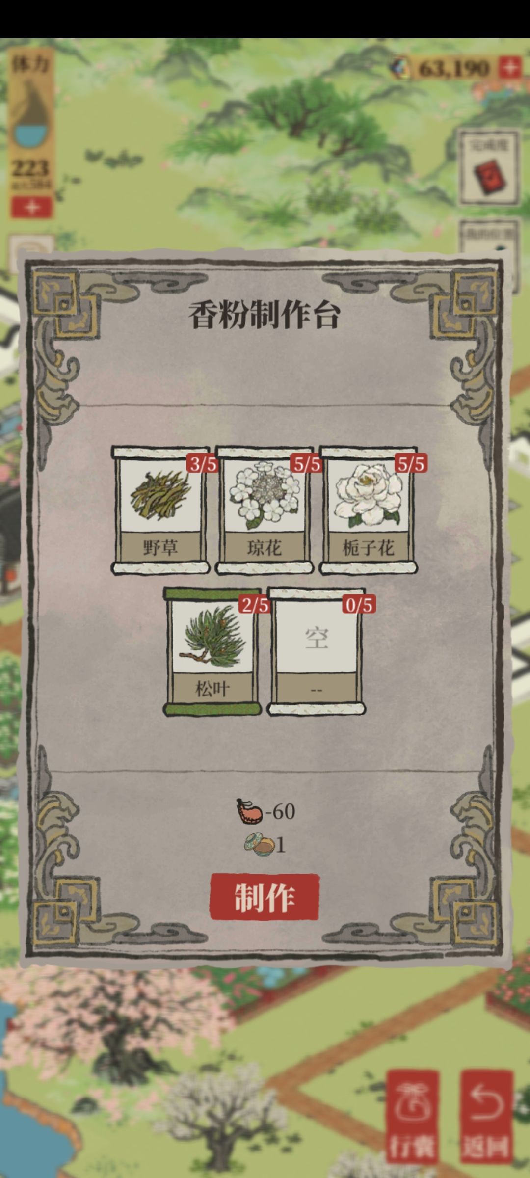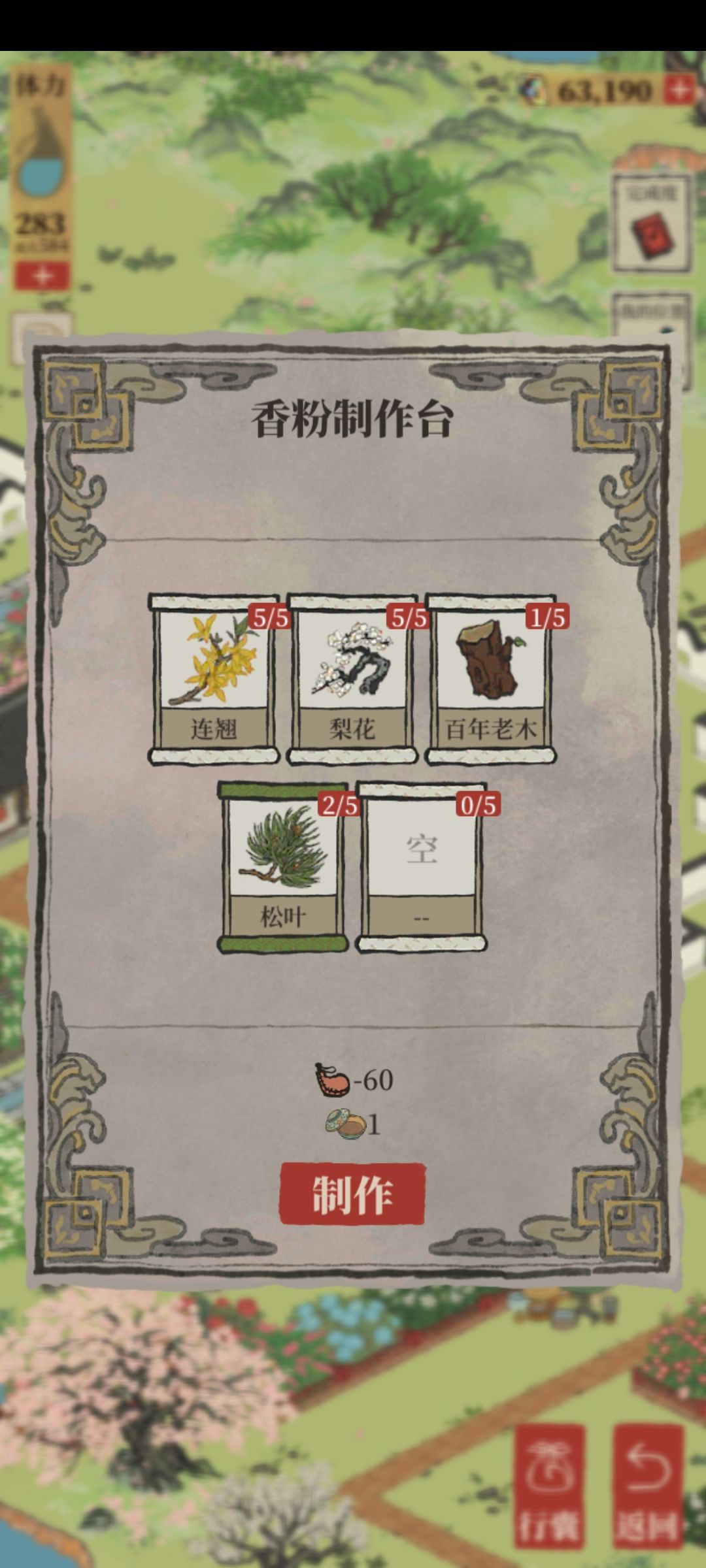 连翘x5,梨花x5,百年老木x1,(松叶x2)