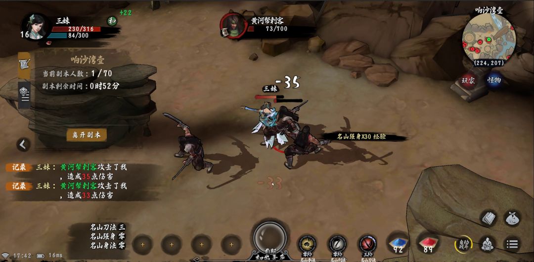 二。白洞·响沙湾:武昌城入口一天进1小时(不限次数)经验获取最多的多人副本有境界限制(相同境界可以进入相同地图)分别是武功63/每次,身法30/每次