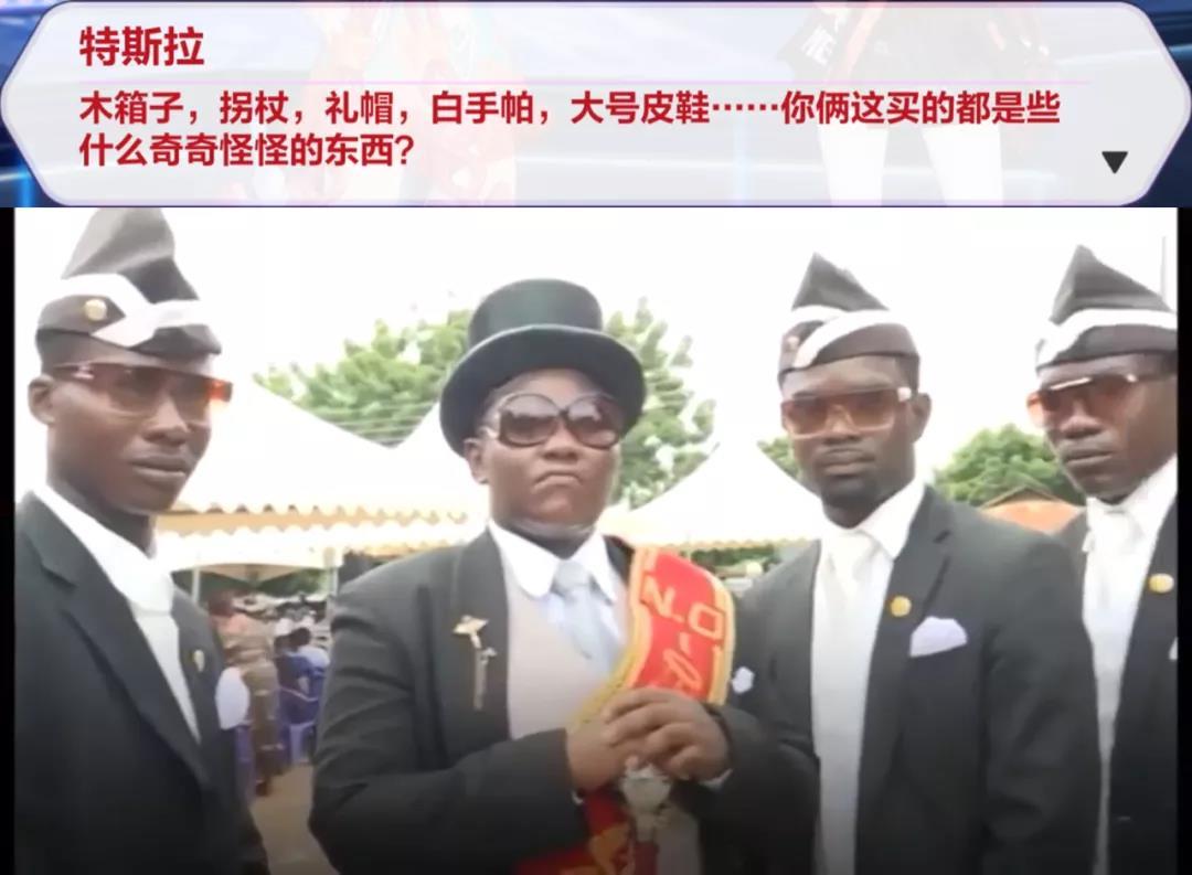 9、双子购买的演出道具出自鬼畜视频《黑人抬棺》,从油管转载到B站后已经斩获四千万播放量,衍生了无数的二创作品,没看过的小伙伴可以前往BV1NZ4y1j7nw围观一下。