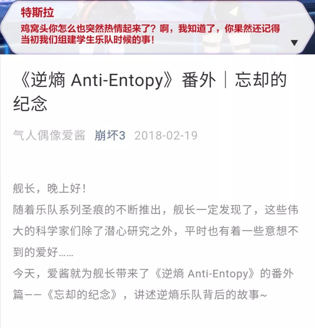 8、特斯拉的学生乐队出自官方在2018年2月19日发布的番外小说《忘却的纪念》,也是三套逆熵乐队圣痕的背景故事。