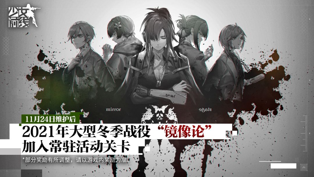 #少女前线# 亲爱的指挥官们,2021年大型冬季战役“镜像论”将于11月24日维护后加入常驻活动关卡!背叛与忠诚,虚识与真相,雾迹重掩,战火未熄!所有谜题都将交由您剖断。通关活动指定关卡,即可获取新型火控元件、校准点券、原型妖精等奖励!