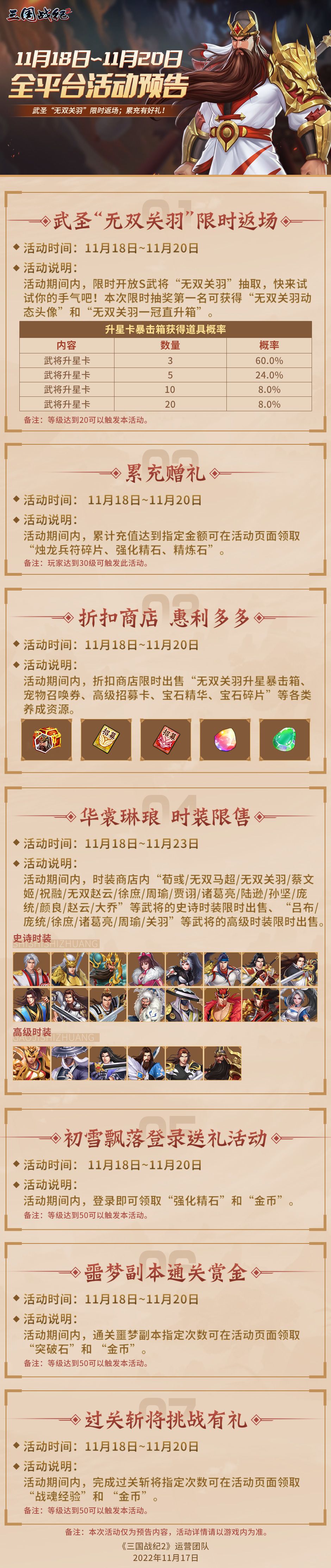 《三国战纪2》11月18日~11月20日全平台活动预告