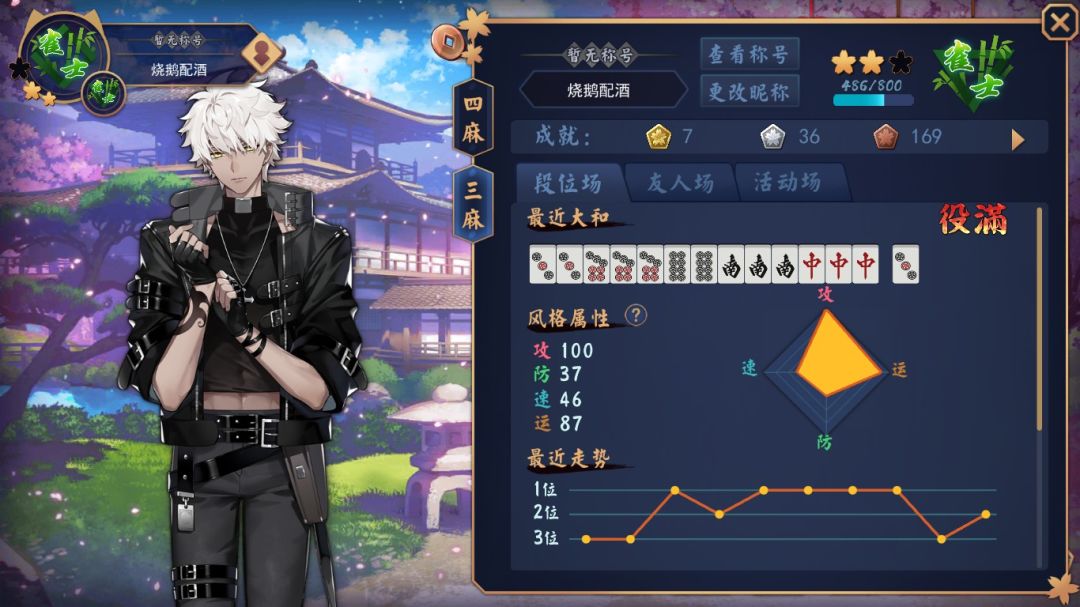 雀魂是去年才接触的棋牌类游戏,之前麻将是一点都不会打,结果一接触就直接冲日麻了(*/ω\*)。最开始啥也不懂,只会断幺九,堪称毒瘤。