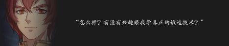 »形象:剑眉星目,红发红眸,高大挺拔。仿佛热血漫的主角,不拘小节笑容灿烂。朴实的布甲和铁靴彰显铁匠的身份,身上带着打造的工具,仿佛随时都能展示绝活,整体形象阳光中带点憨厚的傻气