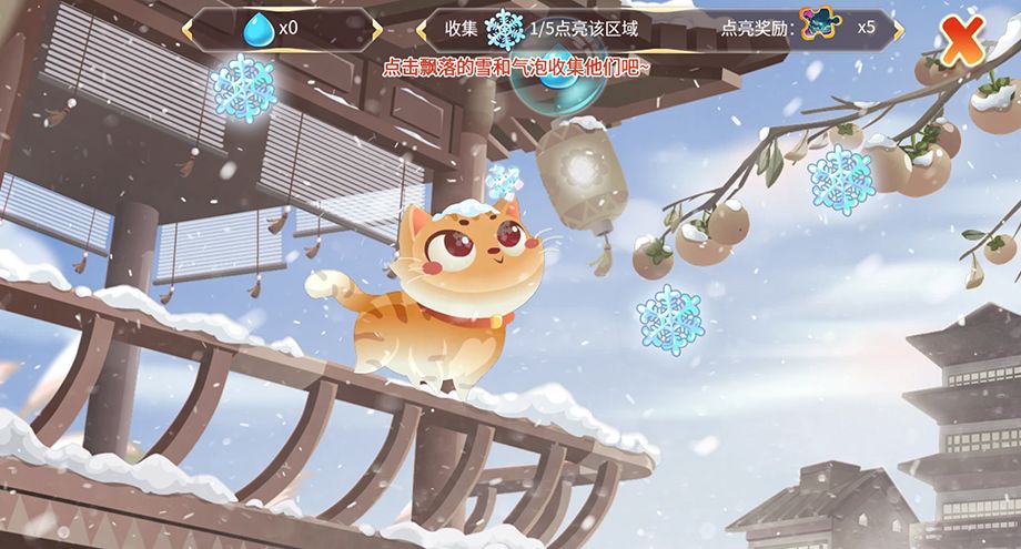 点击飘落的雪花和气泡(收集其中的无根水)~