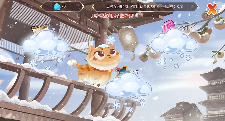 关注上方提示,收集n片雪花后点亮该区域后进入下一个区域进行收集~