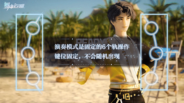 演奏模式与音弦模式依然有较大的区别,演奏模式为固定的6个轨操作,键位固定,不会随机出现。需要练习生们额外注意的是,演奏模式的音符将随着音乐,由屏幕中心向屏幕两侧移动到对应的判定区域内。
